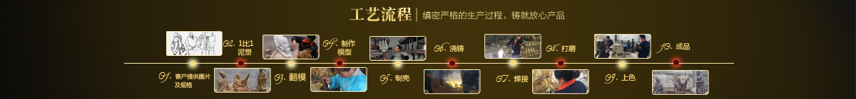 制作一件完美的鑄銅雕塑,最重要的步驟就是制作泥塑模型,然后再用工業(yè)硅膠拓印、翻模。所以泥塑的姿態(tài)、神情生動(dòng)與否直接影響最終銅雕塑的品質(zhì)。所以我廠一直對(duì)泥塑模型的制作格外重視。我廠以雕塑為本,以藝術(shù)為根,挾中華文化之傳統(tǒng),偕歐陸藝術(shù)之風(fēng)韻,風(fēng)格獨(dú)特,盡顯淋漓盡致。我們本著大膽創(chuàng)新、勇于突破的精神,以追求卓越為導(dǎo)向,堅(jiān)持寧缺勿濫為原則,并可依照您提供的要求,為您量身設(shè)計(jì)制作。我廠人才濟(jì)濟(jì),有智慧嚴(yán)謹(jǐn)?shù)墓芾戆嘧樱姸嗄贻p充滿(mǎn)激情、充滿(mǎn)創(chuàng)意的專(zhuān)業(yè)設(shè)計(jì)團(tuán)隊(duì)、有專(zhuān)業(yè)技術(shù)精湛的雕塑制作人才和專(zhuān)業(yè)的施工隊(duì)伍。他們不僅具深厚的文化藝術(shù)底蘊(yùn),更汲取當(dāng)代雕塑精華,博采眾家之長(zhǎng),作品既有嚴(yán)肅莊重寫(xiě)實(shí)題材,也有輕松前衛(wèi)的抽象題材,表現(xiàn)手法上浪漫主義中不乏樸實(shí),現(xiàn)實(shí)主義中蘊(yùn)涵著激情,設(shè)計(jì)理念貫穿古今、融匯中西,深刻詮釋著藝術(shù)的精髓,把古典主義和后現(xiàn)代主義完美的融合,將雕塑藝術(shù)演繹為力的凝聚、美的體現(xiàn),讓人們感受到的不僅是一種藝術(shù)的浪漫與優(yōu)雅、粗獷與悲壯、更是豐富的優(yōu)秀藝術(shù)寶藏和文化傳統(tǒng),讓您在藝術(shù)與文化中穿流,在時(shí)空中飄蕩,使靈魂在藝術(shù)的海洋洗禮。 MORE+